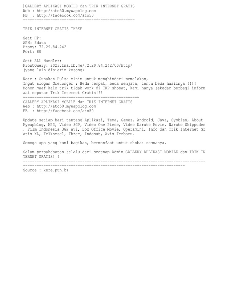 Trik tsel via ss 12 januari 2015; Trik ini hampir sama dengan trik diatas, namun besarnya kuota yang didapatkan akan lebih besar yaitu 10 gb. Indosat, telkomsel, axis, xl axiata dan kartu 3, dll ! Trik internet gratis terbaru, daerah khusus ibukota jakarta. Berbagi trik internet gratis terbaru : Berbagi tutorial trik dan tool internet gratis terbaru untuk komputer dan android. Tri adalah operator yang sangat terkenal dengan harga paket yang murah dan juga dengan internet yang cukup kencang , membutnya banyak diminati khususnya dikalangan pelajar. See more of berbagi trik internet gratis on facebook. Oleh sebab itu banyak yang mencari trik internet gratis. Siapa sih yang nggak mau internet gratis? See more of trik internet gratis terbaru on facebook. 5,140 likes · 104 were here. Trik internet gratis smartfren dengan modem mifi terbaru.